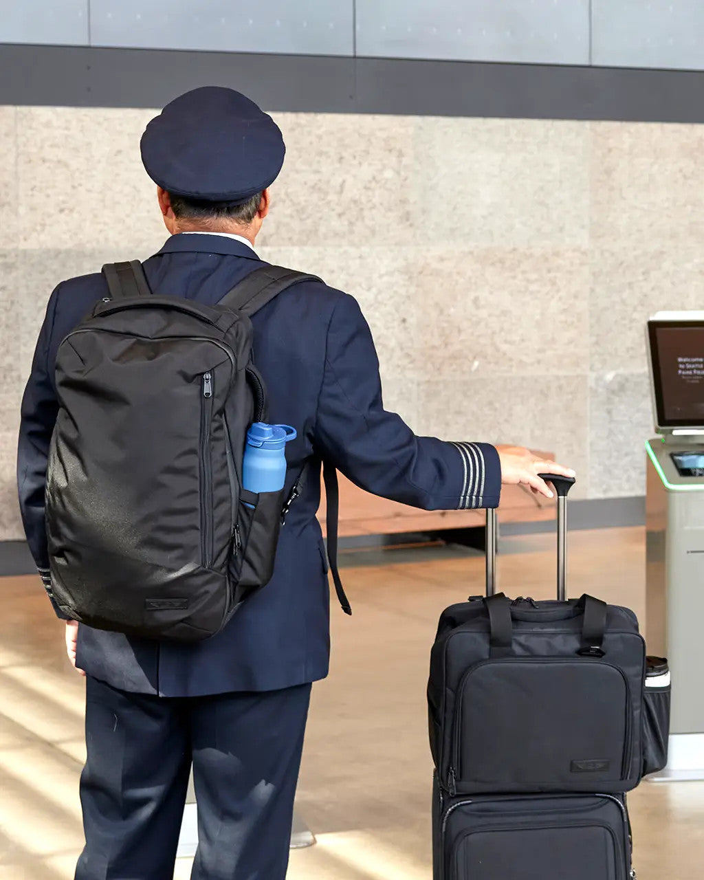 Cumple con todos los requisitos de uniformes de las aerolíneas (las correas se guardan en un bolsillo aerodinámico cuando no están en uso).